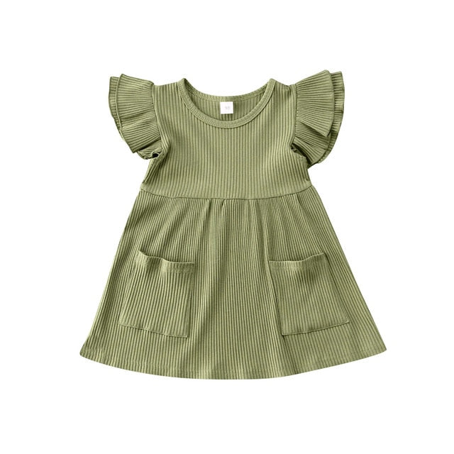 Ruffle sleeve, pocket front, ribbed summer dress.